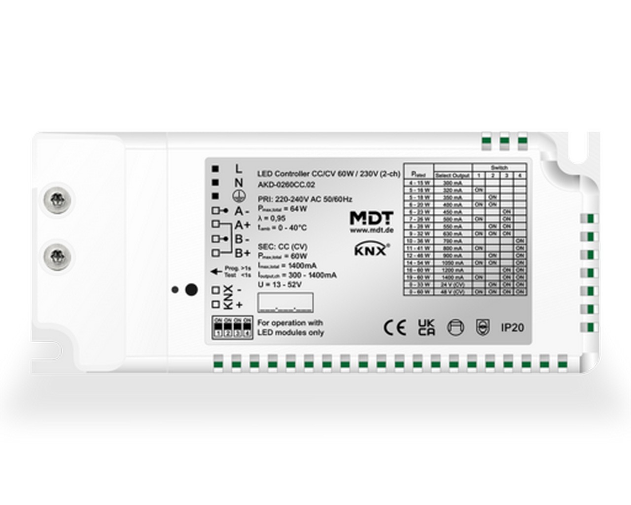 MDT AKD-0260CC.02 KNX LED Controller CC/CV 60 W / 230 V 2-Kanal
