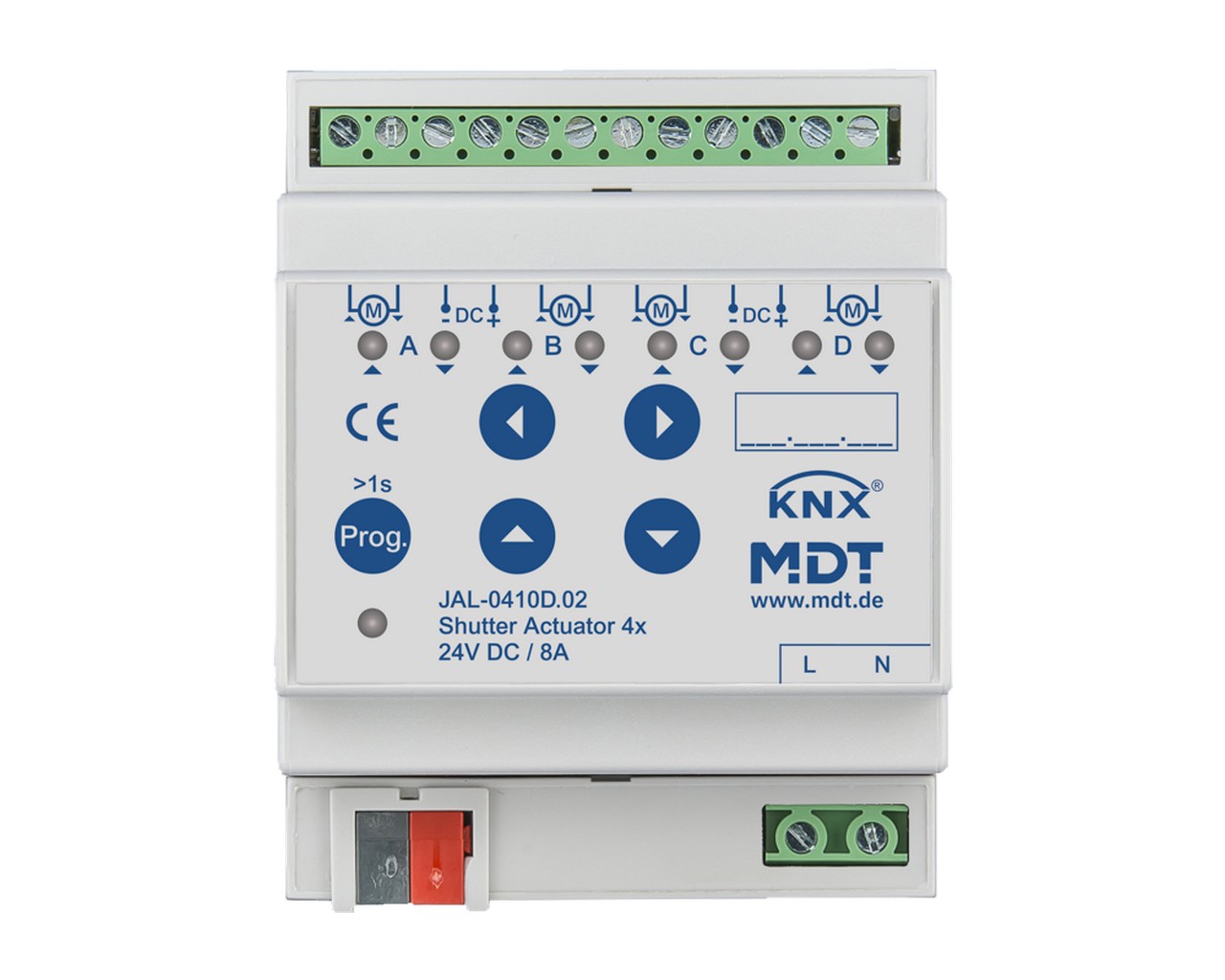 MDT JAL-0410D.02 KNX Jalousieaktor 4-fach, 4TE, 24VDC, 8A (Polwender)