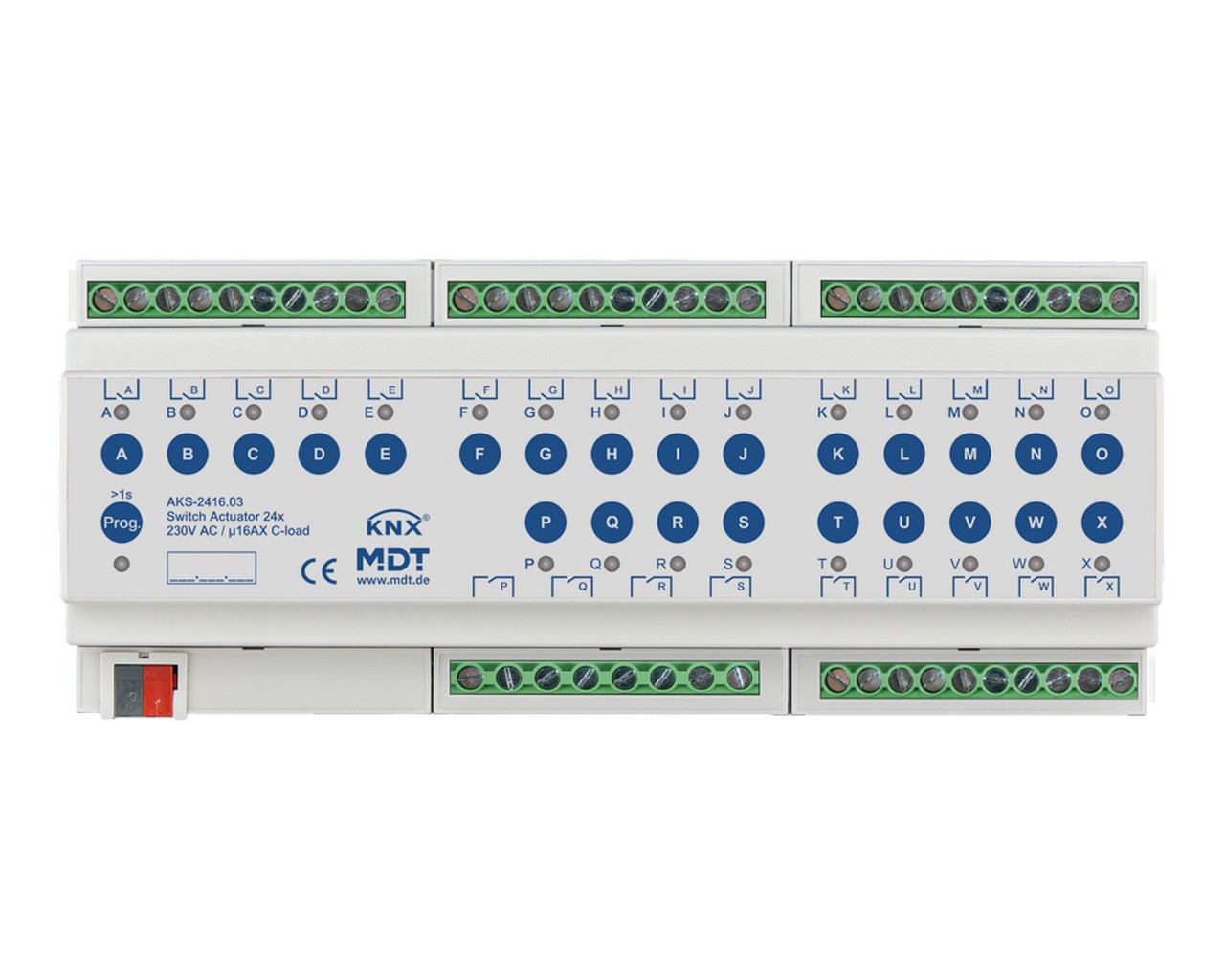 MDT AKS-2416.03 Schaltaktor 24-fach, 12TE, REG, 16A, 230VAC, C-Last, Standard, 140µF