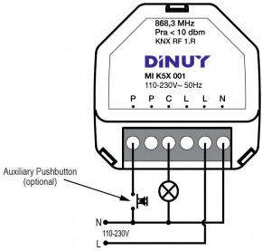 DINUY-MI K5X 001 KNX RF S-Mode Funk-Schaltaktor 1 Kanal 16A mit Tastereingang UP Unterputz
