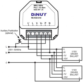DINUY-RE K5X 010 KNX RF S-Mode Funk-Dimmer 1 Kanal für 1-10V bis max. 100 EVGs, UP Unterputz