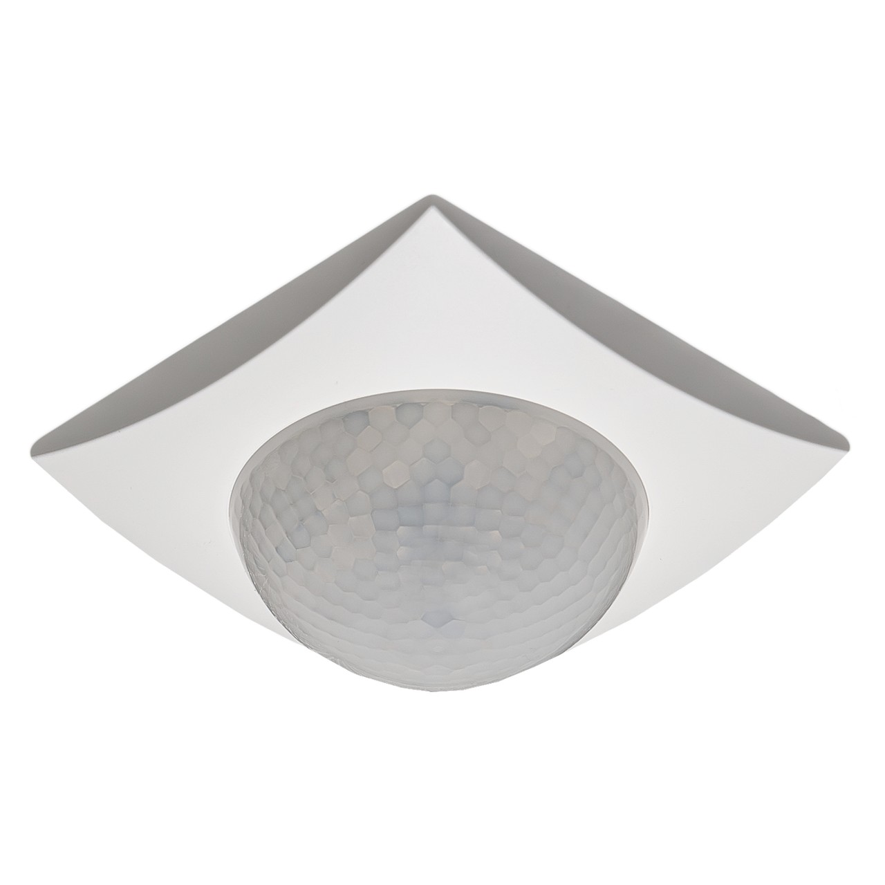 Präsenzmelder 360° mit 4 Sensoren, Reinweiß matt. Ausführung zur Deckenmontage in der Schalterdose. Umfangreiche Applikation. 4 Sensoren mit Linse zur Präsenzerfassung. Einstellbare Bereitschafts- und Präsenzempfindlichkeit für Tag, Nacht und Alarm.