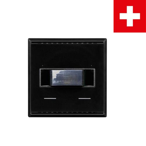 Zwei integrierte Touch-Taster (Bustaster) und zwei LEDs können Bus-Befehlen frei zugeordnet werden. Das Gerät wird mit einem Rahmen der im Gebäude verwendeten Schalterreihe ergänzt und passt sich so nahtlos in die Innenausstattung ein.