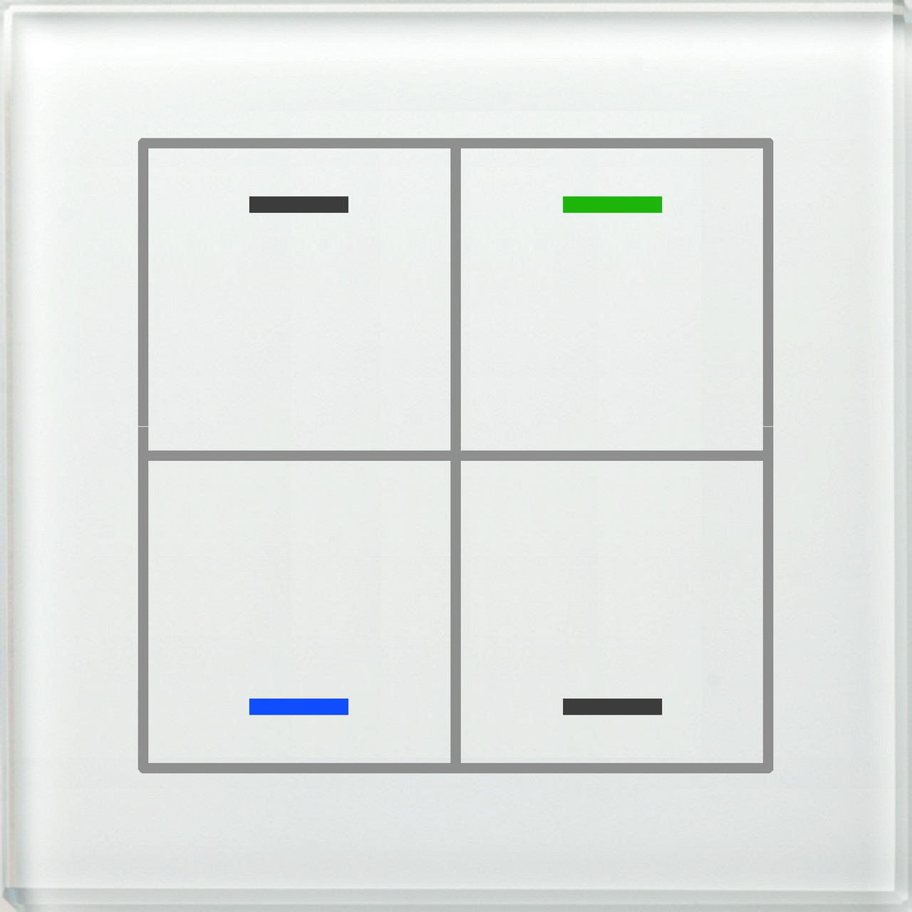 Glastaster II Light 4-fach, RGBW, mit Temperatursensor, Weiß, Neutral. Ausführung Neutral mit 4 Sensorflächen. Integrierter Busankoppler. Umfangreiche Applikation. Neue Mehrfach-Tippfunktion, sendet bis zu 4 Werte/DPTs auf gleiche oder verschiedene Objekte.