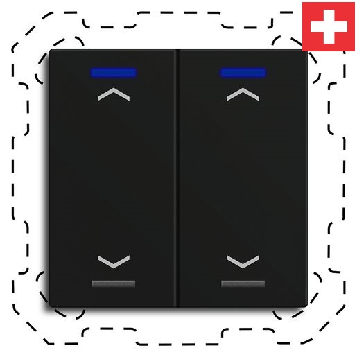 MDT BE-TAL60T216.A1 "Swiss-Edition" Taster Light 60 2-fach, RGBW, Schwarz, Ausführung "Jalousie" mit 2 Tastenpaar, 4 Tasterflächen, mit Temperatursensor, Integrierter Busankoppler