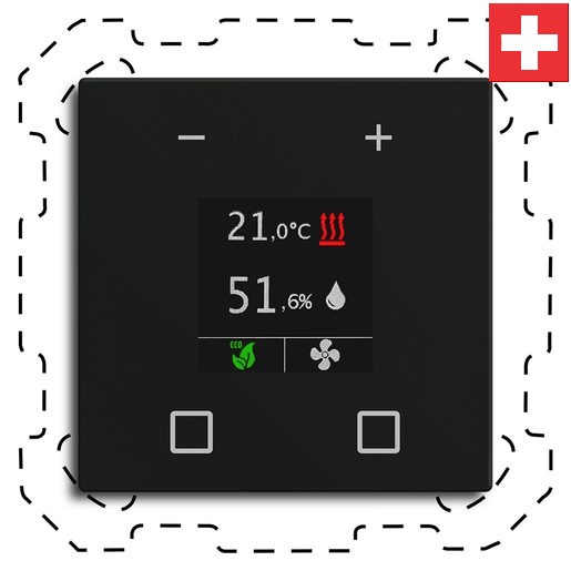 MDT SCN-RTN60S16.01 "Swiss-Edition" Raumtemperaturregler-Nebenstelle Smart 60-CH mit Farbdisplay, Schwarz, Integrierter Busankoppler