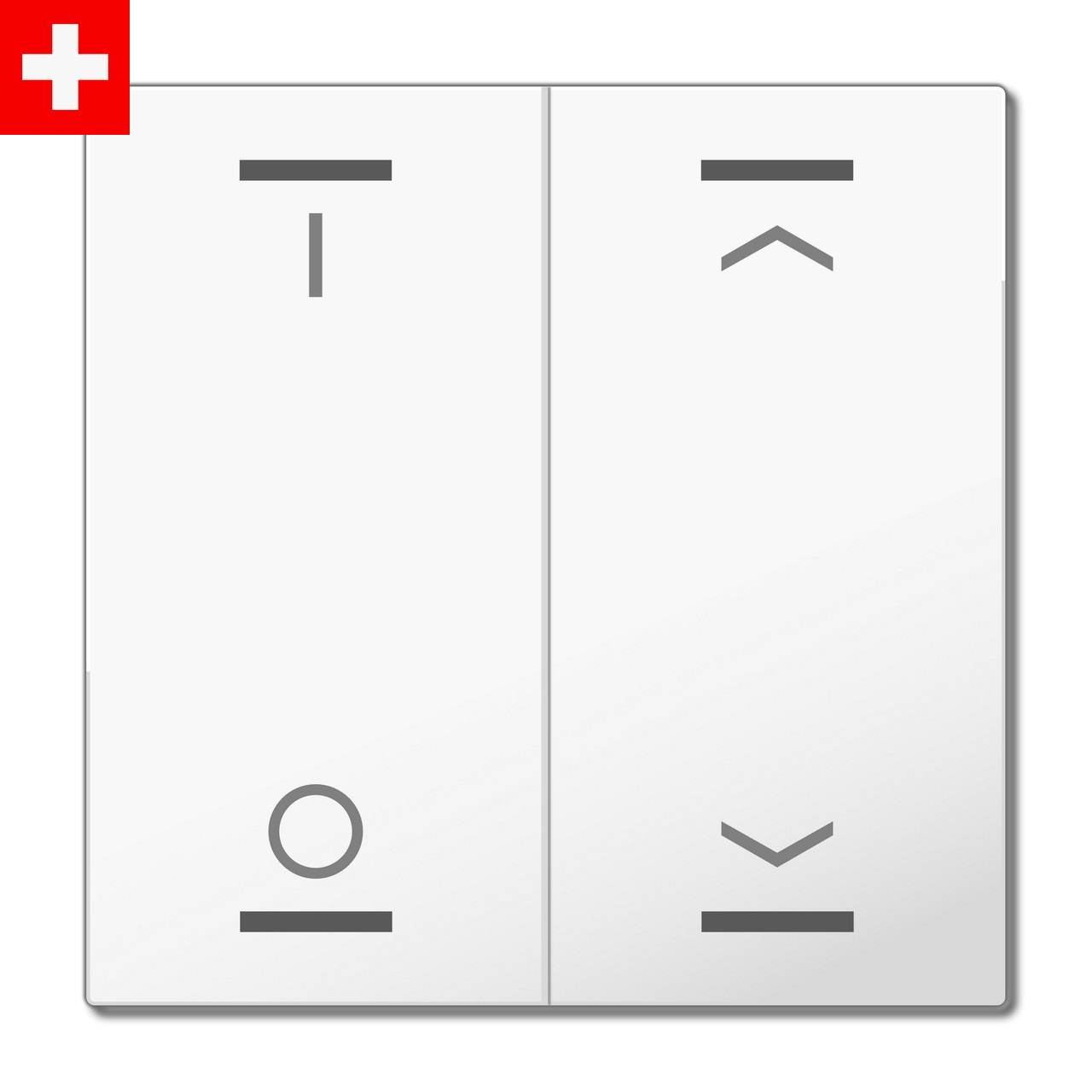 MDT BE-TAL60W211.D1 "Swiss-Edition" Wippenset für Taster Light 60-CH 2-fach, Reinweiß glänzend, Ausführung "Beleuchtung" (links) / "Jalousie" (rechts)