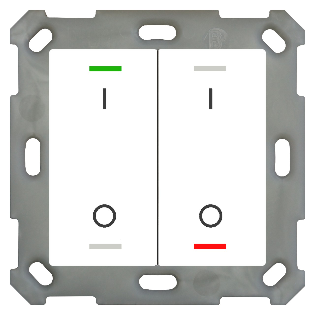 MDT BE-TAL5502.B1 Taster Light 55 2-fach, RGBW, Reinweiß glänzend, Ausführung I/O Symbol, mit 2 Tastenpaaren, 4 Tasterflächen, Integrierter Busankoppler
