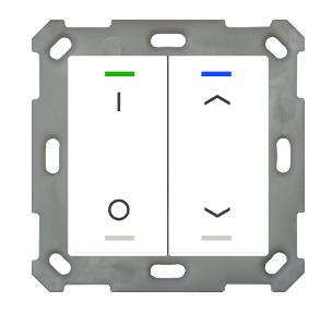 MDT BE-TAL5502.D1 KNX Taster Light 55 2-fach, Reinweiß glänzend, Ausführung AUF/AB (Rechts) und I/O Symbol (Links), mit 2