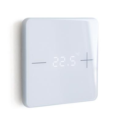 Der KNX eTR 101 hat PI-Regler für eine Heizung und eine Kühlung (ein- oder zweistufig). Mit den Touch-Tasten + und - wird die Raumtemperatur verändert.
