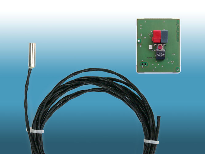 Der Temperatursensor KNX T-UN besteht aus Auswerteelektronik und Messfühler. Der Sensor misst die Temperatur im Innen- oder Außenbereich.