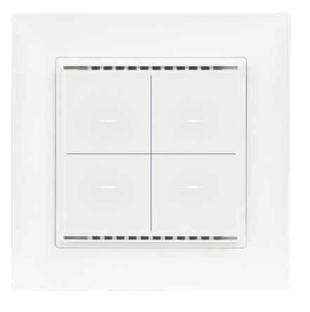 Kommunikationsobjekte können über UND- und ODER-Logik-Gatter verknüpft werden. Das Gerät wird mit einem Rahmen der im Gebäude verwendeten Schalterreihe ergänzt und passt sich so nahtlos in die Innenausstattung ein.