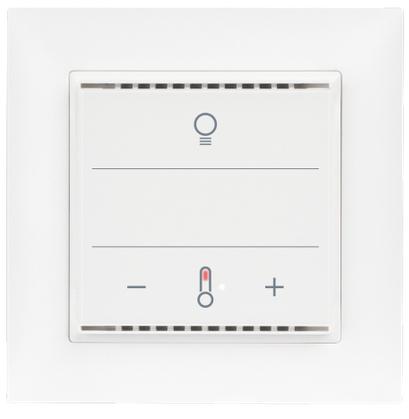 Der Cala KNX MultiTouch T CH hat einen PI-Regler für eine Heizung und eine Kühlung. Mit den Touch-Tasten „+" und „-" wird die Raumtemperatur verändert. Über UND- und ODER-Logik-Gatter können Kommunikationsobjekte verknüpft werden.