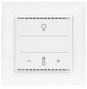 Der Taster Cala KNX MultiTouch T CH hat berührungssensitive Schaltflächen, mit denen Funktionen im KNX-Gebäudebussystem aufgerufen werden können. Die Glasoberfläche ist bedruckt mit Bereichen zur Licht- und Temperatur-Einstellung. In diesen Bereichen sind LEDs integriert, deren Verhalten eingestellt werden kann. Bei Cala KNX MultiTouch T Light/Sunblind CH kommt ein Bereich für das Fahren von Jalousie/Sonnenschutz (Auf/Ab) hinzu, bei Cala KNX MultiTouch T Light/ Scenes CH ein Bereich zum Szenenaufruf (3 Szenen).
