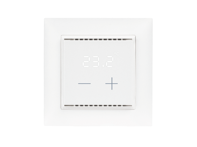 Das Gerät wird mit einem Rahmen der im Gebäude verwendeten Schalterreihe ergänzt und passt sich so nahtlos in die Innenausstattung ein.