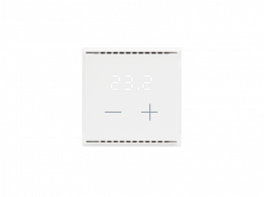 Der Cala KNX T 101 CH hat einen PI-Regler für eine Heizung und eine Kühlung (ein- oder zweistufig). Mit den Touch-Tasten „+" und „-" wird die Raumtemperatur verändert.