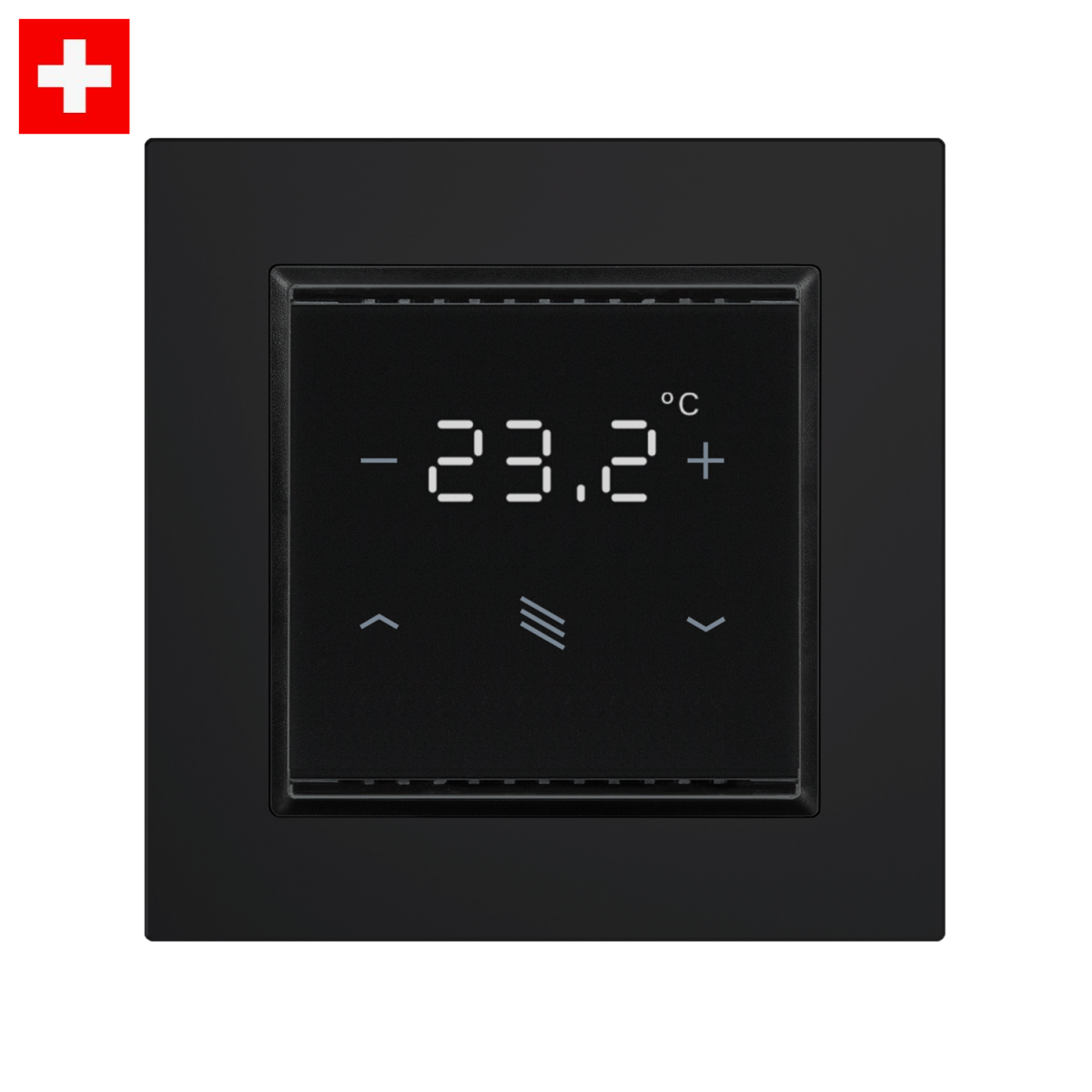 Elsner 70993 Cala KNX T 201 Sunblind CH, black 9005, Glastaster, Raumtemperaturregler, Beschattung, Swiss-Edition