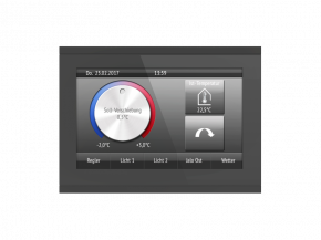 Das Display Corlo Touch KNX 5in für das KNX-System bietet verschiedene Nutzungsmöglichkeiten: Durch die berührungssensitive Glas-Oberfläche kann es wie ein normaler Schalter verwendet werden. Das hochauflösende Display ist für die Anzeige von Texten, Bildern oder Grafiken geeignet. Neben aktuellen Messwerten und Meldungen aus dem KNX-Bussystem können z. B. auch Fotos dargestellt werden. Zugleich kann das Corlo Touch KNX 5in als Bedienzentrale für die automatische Beschattung, Lüftung und Raumklimaregelung eingerichtet werden.