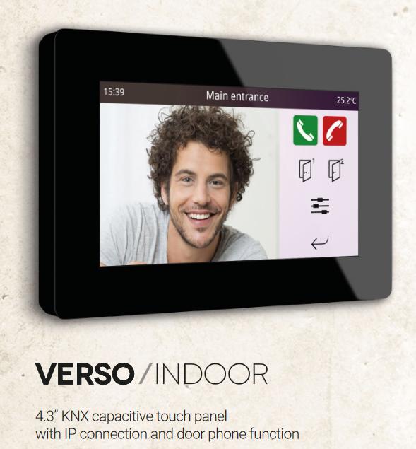 IDDERO VERIND-B, VERSO TOUCH INDOOR schwarz, KNX Raumbediengerät mit kapazitivem 4,3” Touchscreen, IP-Verbindung und IP-Türkommunikation Innenstation mit Remotezugriff und Push