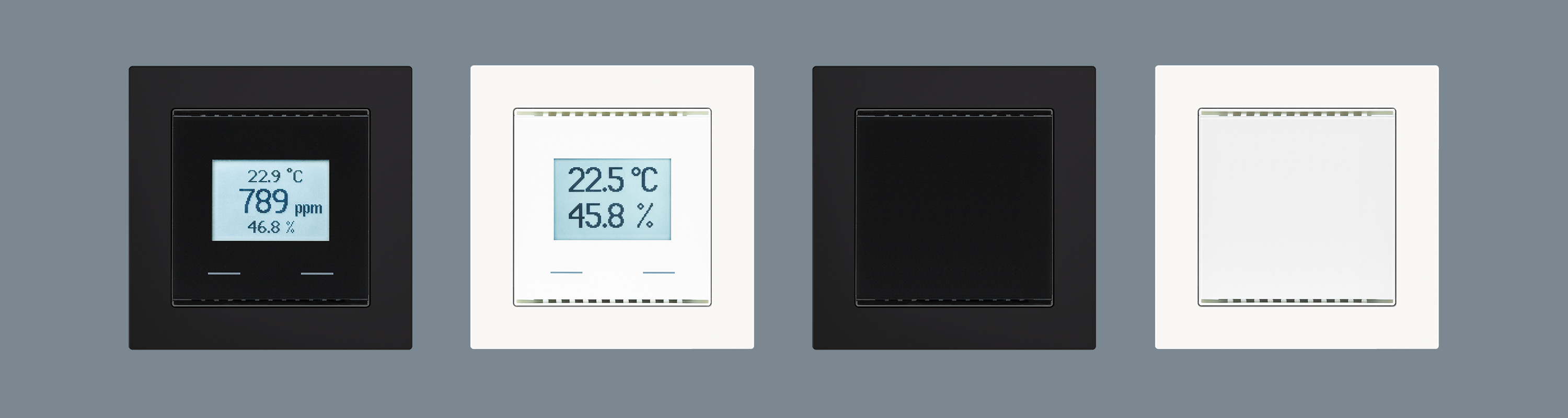 Der Sensor KNX AQS/TH-UP gl misst die CO2-Konzentration, die Temperatur und die Luftfeuchtigkeit im Raum und berechnet den Taupunkt. Über den Bus kann der Innenraumsensor externe Werte von Temperatur, Feuchtigkeit und CO2-Konzentration empfangen und mit den eigenen Daten zu Gesamtwerten (Mischwerte, z. B.Raumdurchschnitt) weiterverarbeiten.