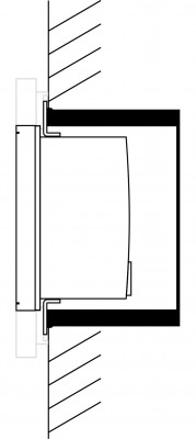 Das Gehäuse wird mit einem Rahmen der im Gebäude verwendeten Schalterreihe ergänzt und passt sich so nahtlos in die Innenausstattung ein.