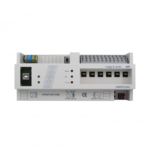 Lingg&Janke 89222SEC NTA6F16H-USB-2-SEC KNX Secure Netzteilaktor 6-fach, USB, Handbedienung, 2. Generation, 12 TE Schaltleistung 16A 250 VAC, C-Last 200µF |