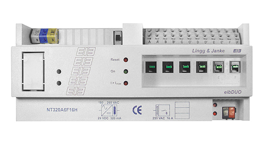 Lingg&Janke 89212SEC NTA6F16H-2-SEC KNX Secure Netzteilaktor 6-fach, Handbedienung, 2. Generation, 12 TE Schaltleistung 16A 250 VAC, C-Last 200µF |