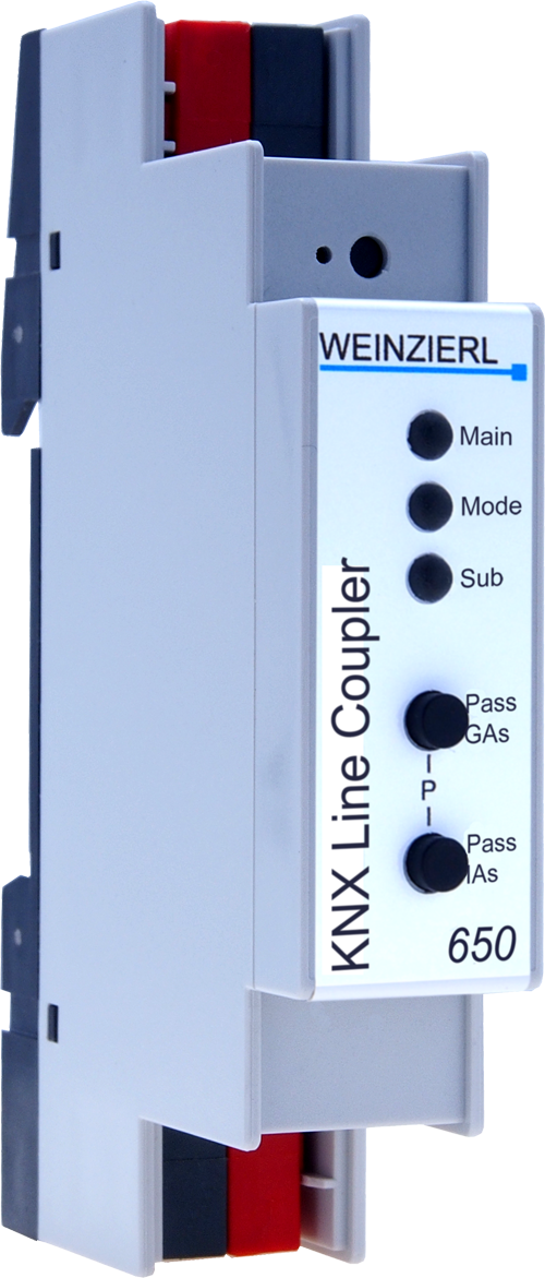 Der KNX TP LineCoupler 650 ist ein KNX Linienkoppler in kompakter Bauweise. Er verbindet zwei KNX Segmente (z.B. eine KNX Linie mit einem KNX Bereich). Das Gerät verfügt über eine Filtertabelle (8k Byte) und gewährleistet eine galvanische Trennung zwischen den Linien. Der Koppler ist kompatibel mit der ETS® Software ab ETS4.2. Die Taster auf der Frontseite ermöglichen, die Telegrammfilter für Testzwecke zu deaktivieren. Die LEDs zeigen Betriebszustände sowie Kommunikationsfehler am Bus an.