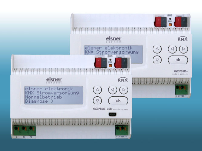Die Spannungsversorgungen KNX PS640+ und KNX PS640+USB liefern 29 V Busspannung für das KNX-System und 24 V DC Versorgungsspannung für 24 V-Geräte. Die KNX PS640+USB hat zusätzlich einen USB-Anschluss für den einfach Buszugriff.